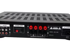 Amplificador de sonido para hogar con sistema de USB, microSD, bluetooth, radio FM, ademas contiene dos entradas de microfonos (2) , entrada para celular, computador o televisor, salida para cabina activa o bajo activo, ecualizacion interna de Brillo y Bajo en sonido, efecto de Echo en el microfono, corte de frecuencia en señal baja y volumen estereo; con lleva control remoto, antena para AM Y FM.
